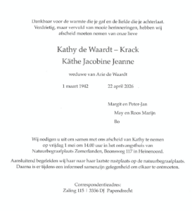 • Eventueel een toegevoegde tekst van de familie.