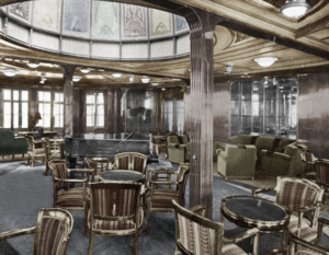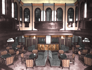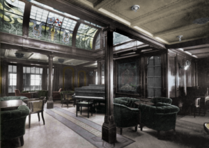 ss Patria – Rooksalon 1e klasse met gebrandschilderde ruiten 1919