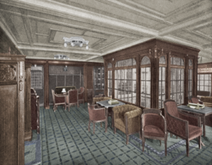 ss Patria – Rooksalon 1e klasse met gebrandschilderde ruiten 1919